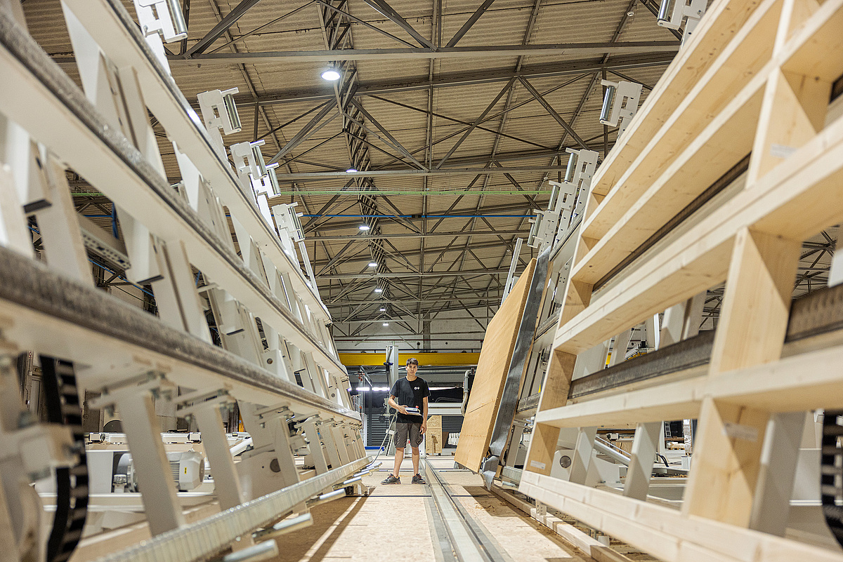 Die für die Industrialisierung des Holzbaus erforderlichen Maschinen und Anlagen liefern drei HOMAG-Töchter aus Deutschland und Dänemark. Im Schulterschluss decken die Unternehmen Weinmann, System TM und Kallesoe alle wesentlichen Prozessschritte ab, die für die Fertigung von Wand-, Decken- und Dachelementen nötig sind.
